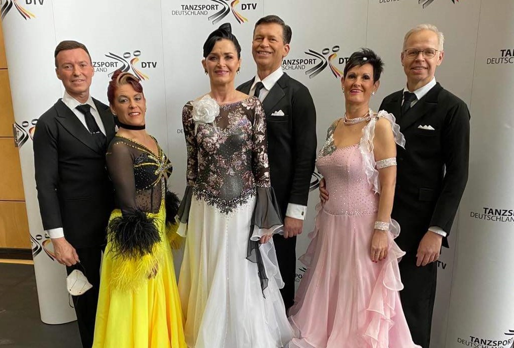 Unsere Paare der Senioren III Standard eröffneten das Wochenende und starteten bereits am Freitagnachmittag ins Turniergeschehen. Dieses Turnier hatte mit rd. 70 gemeldeten Paaren auch das mit Abstand größte Starterfeld. Zusammen mit einigen Spitzenpaaren und Neuzugängen in dieser Altersstufe starteten unsere 3 Paare Wolfgang Binder und Gudrun Schürrle, Siggi und Maria Klein sowie Albert und Andrea Rommel in die Vorrunde. Alle drei Paare zogen über die erste Zwischenrunde mit 51 Paaren ins Viertelfinale ein. Hier beendeten Wolfgang und Gudrun sowie Albert und Andrea das Turnier auf einem gemeinsamen geteilten 23./24. Platz. Siggi und Maria qualifizierten sich für das Semifinale und kamen hier auf einen tollen 12. Platz.