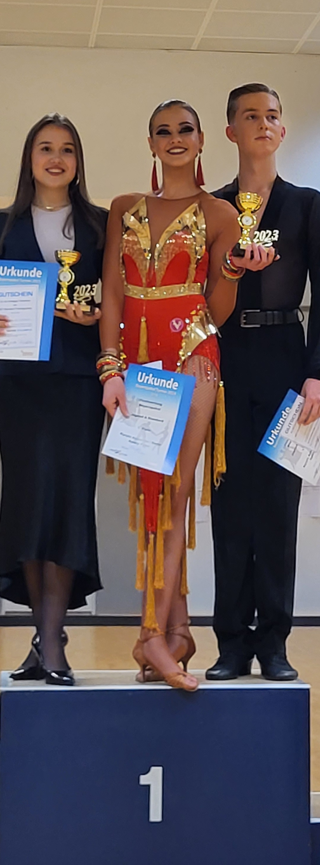Was der kleine Bruder kann, kann der große auch. Kyrylo Avtushko tanzte sich mit Daria Filter in der Jugend A Standard ebenfalls an die Spitze des Starterfeldes. Auch Kyrylo und Daria starteten in der Lateinsektion. Um nur eine Platzziffer verpassten die beiden Platz 2 und beendeten das Turnier auf dem 3. Platz.