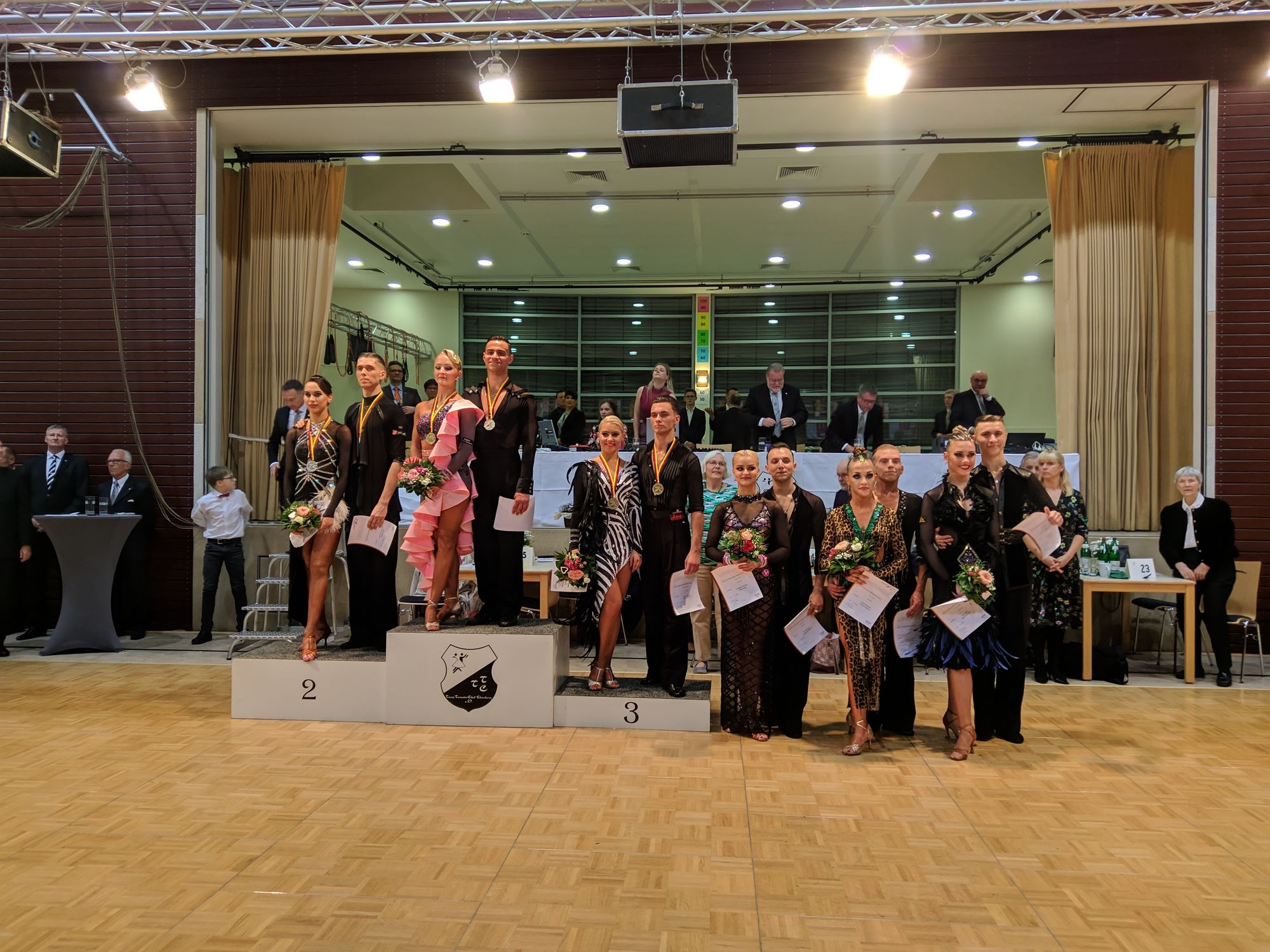 Pénélope Zschäbitz und Michael Ziga zeigten sich in Top-Form und tanzten sich bis ins Finale der Deutschen Meisterschaft. Im pink-schwarzen Diva-Outfit konnten sie Fans und Publikum mitreißen und die Wertungsrichter überzeugen. Am Ende hieß es dann sogar Platz 1 für die beiden in der Lateinsektion! Zusammen mit einem 6. Rang in Standard landeten Pénélope und Micha letztendlich auf dem 4. Platz in der Gesamtwertung. Bemerkenswert ist das denkbar knappe Finalergebnis - die Platzziffern der Finalpaare lauten 28, 30, 36, 37, 39 und 40.