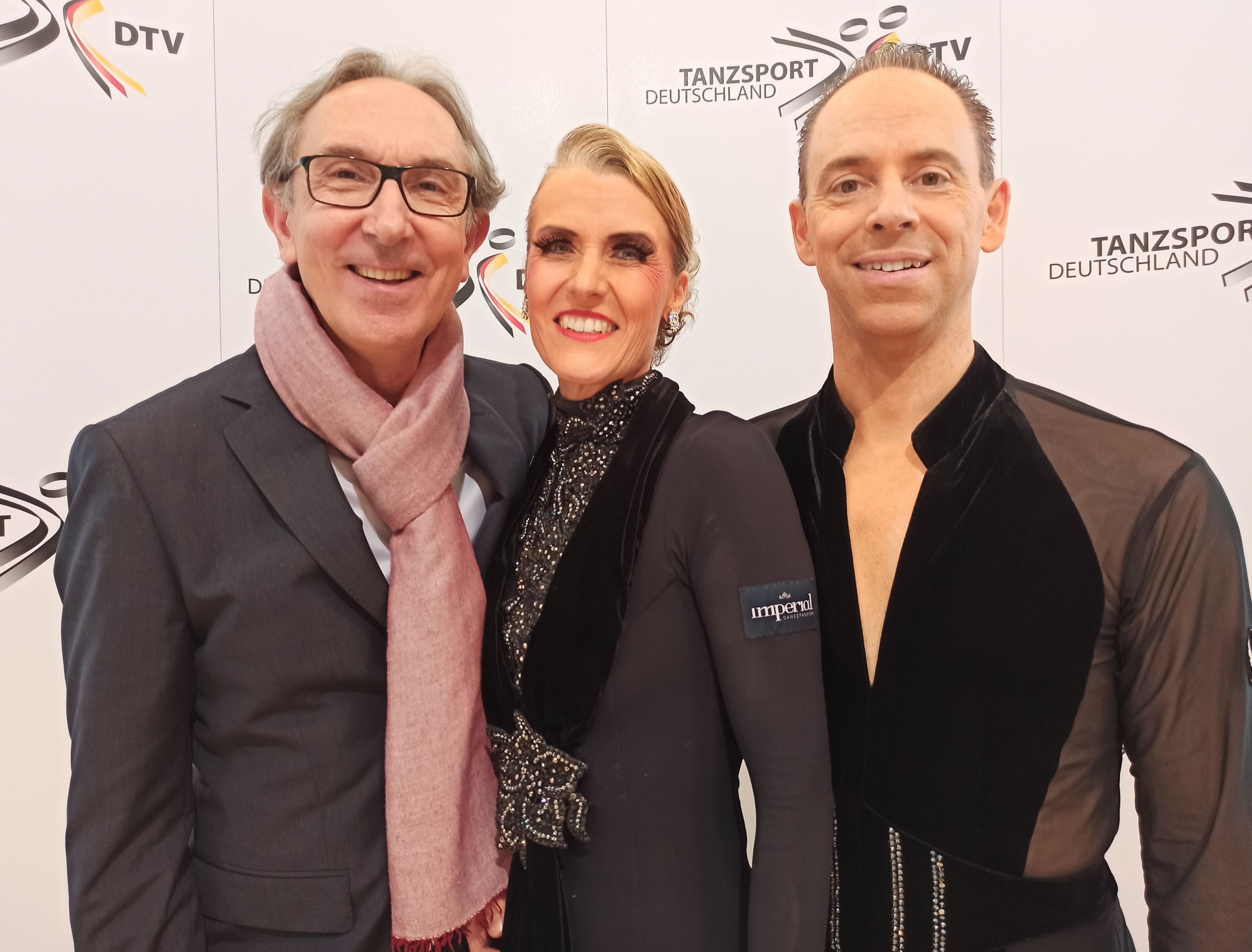 Für Oliver Brosch und Tina Grassl war es die erste gemeinsame Deutsche Meisterschaft und die beiden hatten einige Schlachtenbummler „im Gepäck“, als sie sich dem internationalen 9-köpfigen Wertungsgericht in der Vorrunde stellten. Souverän meisterten die beiden diese und zogen mit fast allen Kreuzen ins Viertelfinale ein.