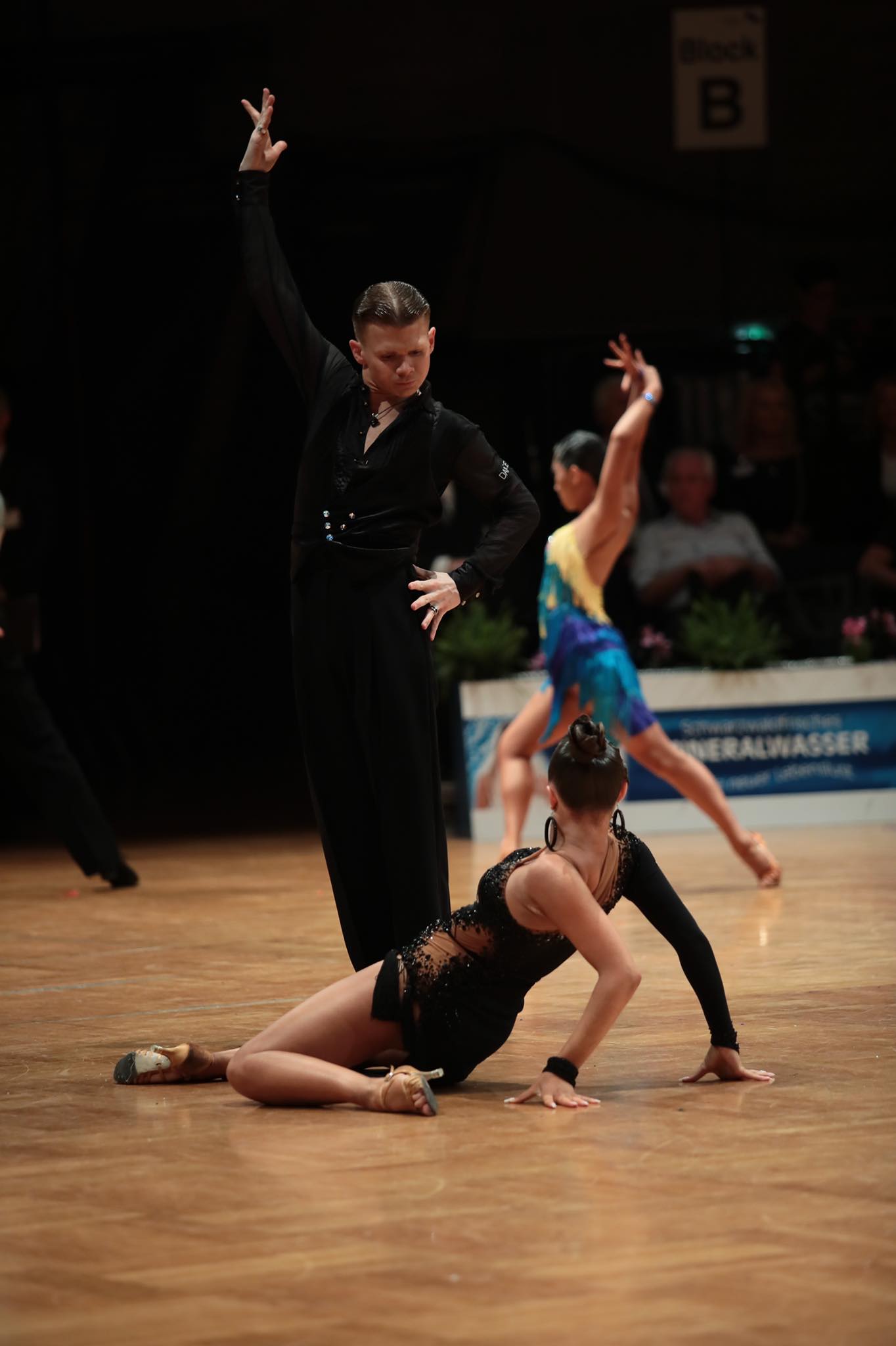 Ein paar Kilometer weiter südlich, im niedersächsischen Buchholz, trafen sich 44 Paare der Hauptgruppe A Latein in der Nordheidehalle und tanzten um den Deutschland-Cup dieser Klasse. Mit dabei waren Jens Kothe und Vanessa Gergert, die sich dem 7-köpfigen Wertungsgericht präsentierten. Die Leistung überzeugte und so zogen sie problemlos in die nächste Runde ein. Zufrieden mit ihrer Leistung beendeten die beiden das Turnier als bestes TBW-Paar mit Platz 14 als Anschlusspaar ans das 13-paarige Semifinale.