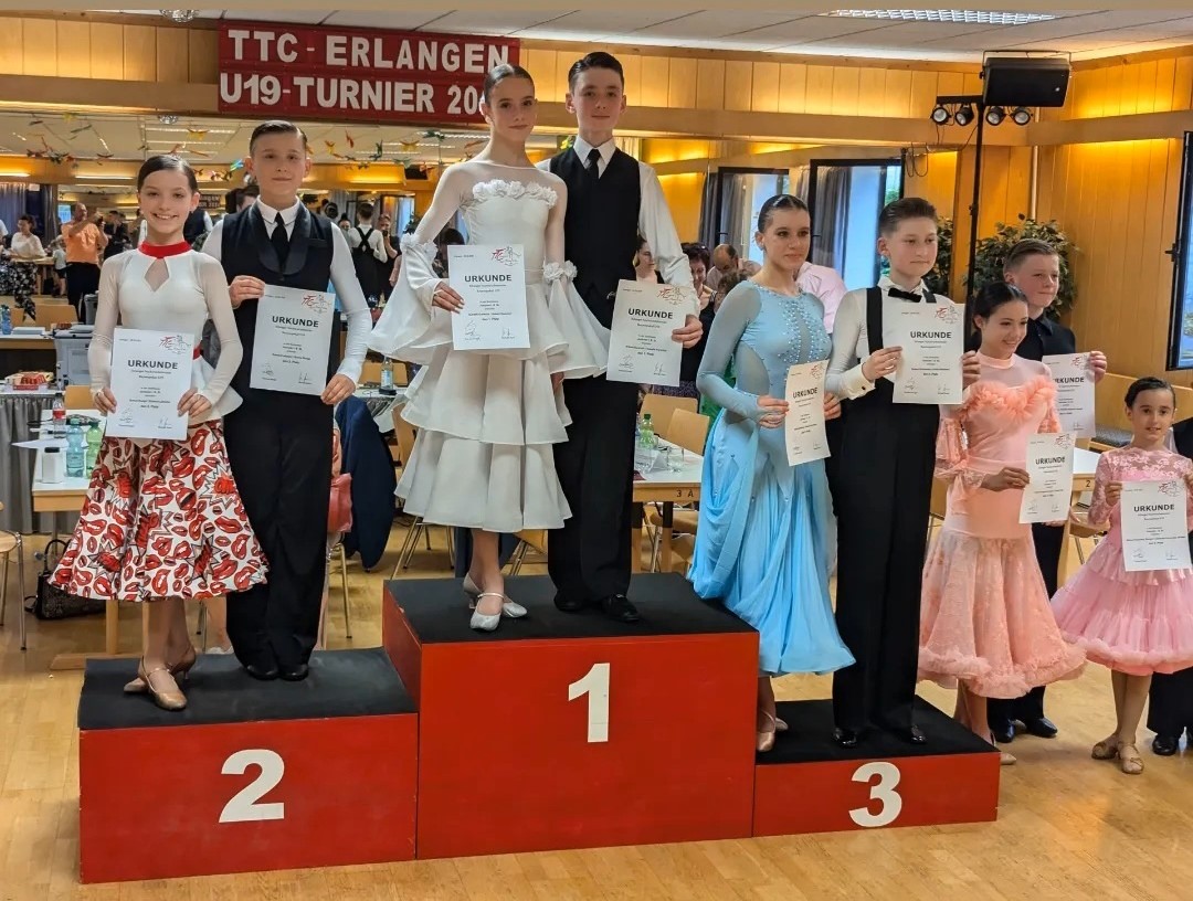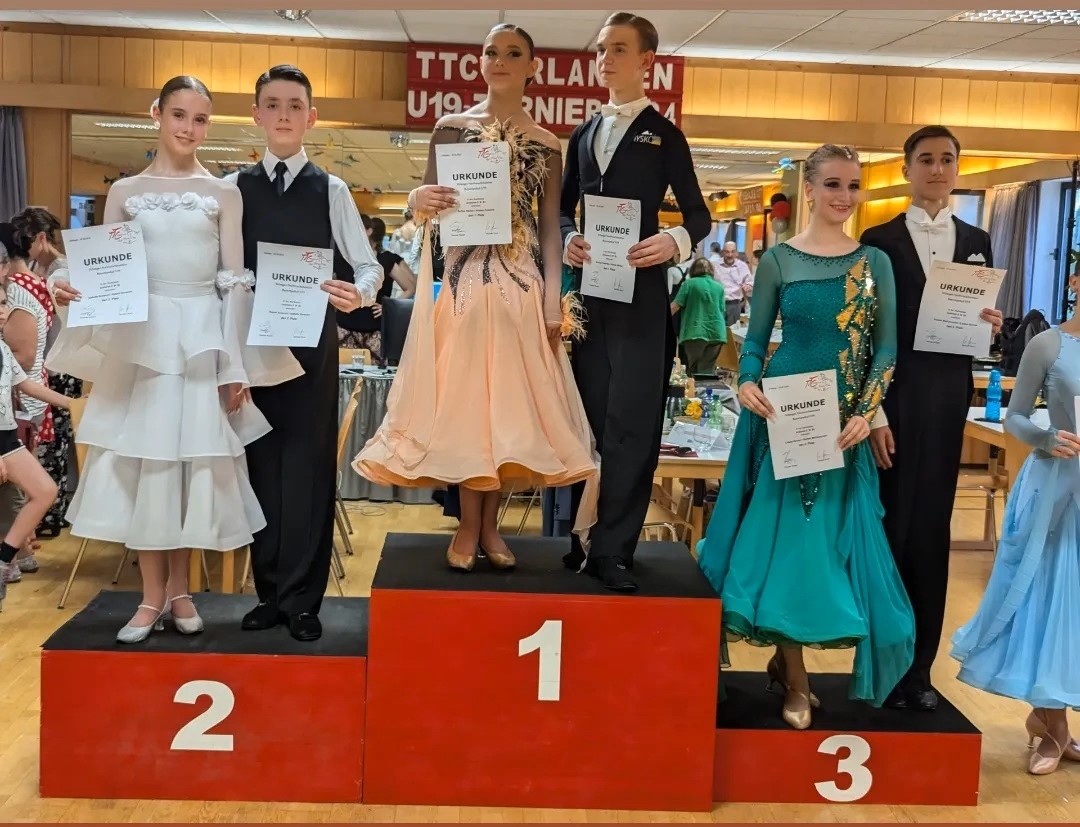 Robert und Isabell Gurevich erreichen in Erlangen beim Junioren II B Standardturnier im Finale einen tollen 2. Platz und einen unangefochtenen Sieg in der Junioren I B Standard.