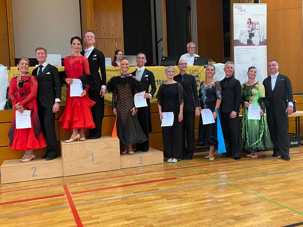 Anschließend starteten Siggi und Maria Klein bei den Masters III S Standard und tanzten über Vorrunde und Semifinale ins Finale. In der Endabrechnung mussten sich die beiden knapp geschlagen geben und belegten mit einem zweiten Platz in Tango und Slowfoxtrott einen tollen 3. Platz.