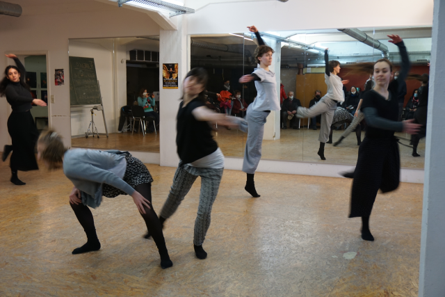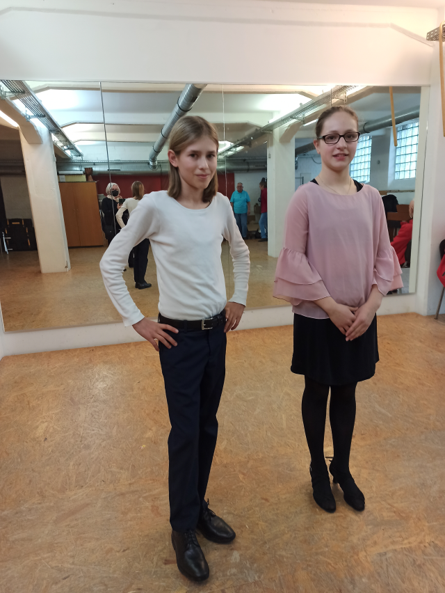 Geplant waren die Auftritte mit Mittanz-Aktionen bei frühlingshaften Temperaturen auf dem Roserplatz, aber das Schneetreiben und die damit verbundenen kalten Temperaturen machten einen Umzug in das benachbarte Freie Musikzentrum notwendig. Hier fanden sich einige tanzinteressierte im Keller ein und unsere Mitglieder konnten sich präsentieren. Den Start machtne Milo Rost und Johanka Zdrazilova, die einen Einblick ins Lateintanzen boten. Die beiden 12-jährigen tanzen seit rd. 2 Jahren und zeigten ChaChaCha, Rumba und Jive. Trainiert werden die beiden von Elina Geller.
