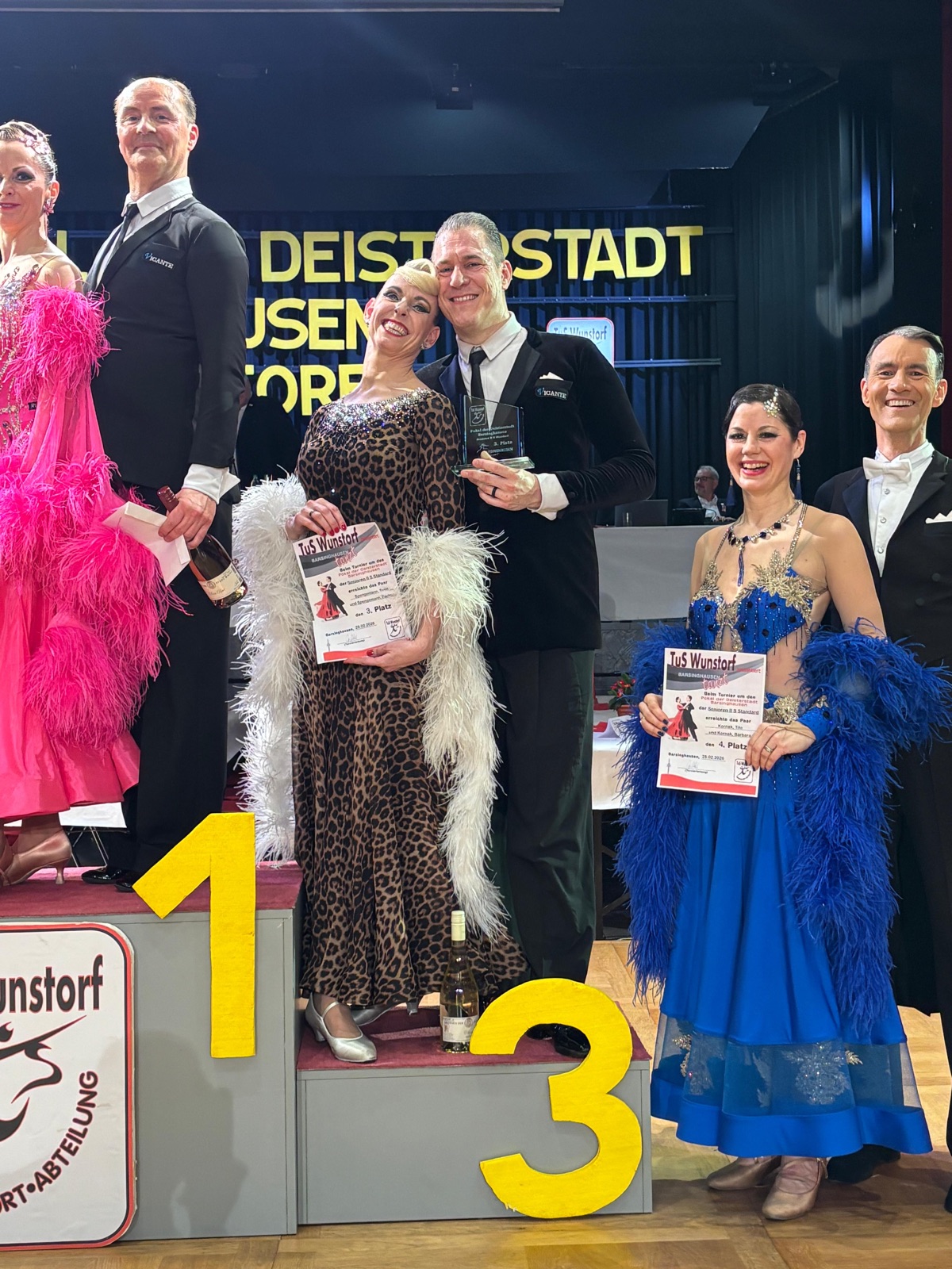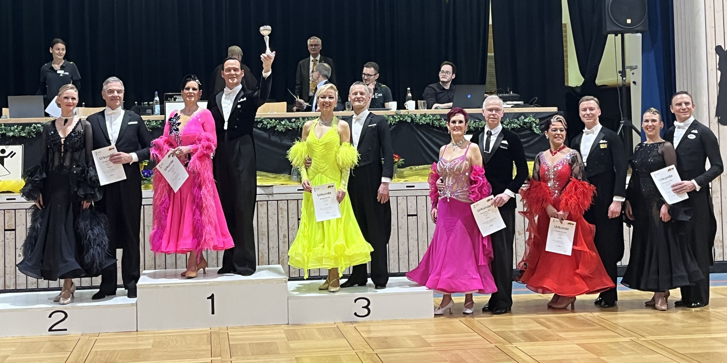 Albert und Andrea belegten in einem starken Feld den Anschlussplatz ans Finale. Siggi und Maria landeten auf dem 5. Platz. Gudrun und Wolfgang verfehlten den 3. Platz ganz knapp um eine einzige Wertung. Am Ende feierten alle Finalpaare das Ergebnis gemeinsam mit einem Glas Sekt.