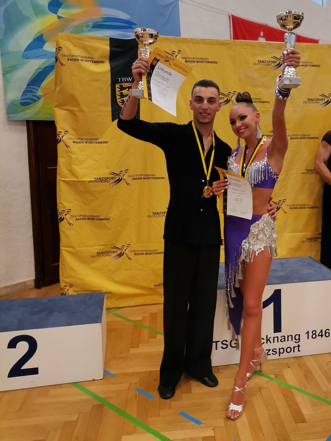 Beide Paare präsentierten sich souverän und gut vorbereitet und so zogen sie von der Vorrunde über die Zwischenrunde ins Finale ein. Die verdeckte Wertung hielt es für Publikum und Paare bis zum Ende spannend. Am Ende holten sich Marco und Meldoy mit allen gewonnen Tänzen die Goldmedaille und damit auch zum wiederholten Mal den Landesmeistertitel – dieses Mal in der Hauptgruppe A – sowie den Aufstieg in die S-Klasse. Kurz dahinter folgten mit gemischten Wertungen Jens und Vanessa, die sich auf ihrer ersten gemeinsamen Landesmeisterschaft einen tollen fünften Platz sicherten.