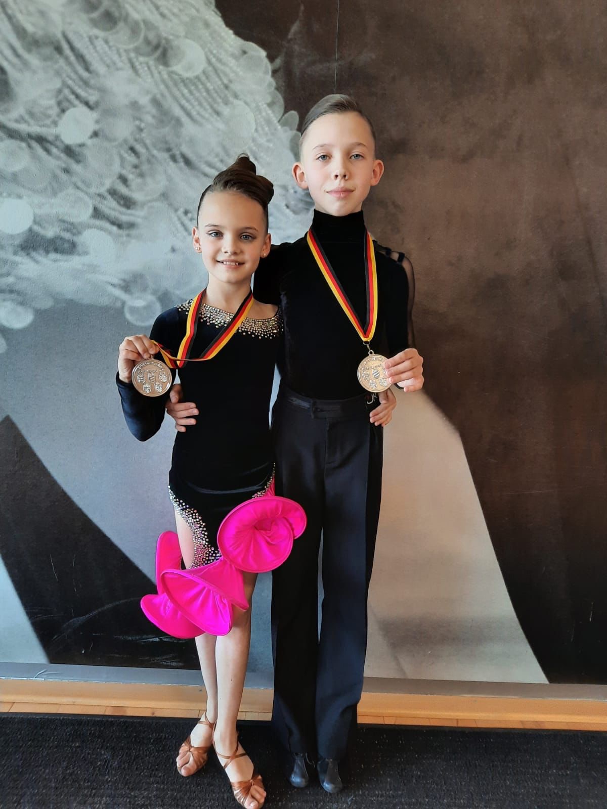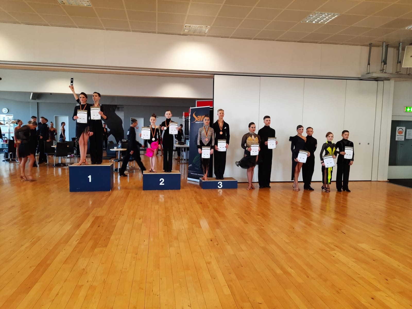 Alle Paare hatten fleißig trainiert und waren gut vorbereitet an den Start gegangen. Für Frederik und Alina war es die erste Gebietsmeisterschaft und die beiden beendeten das Turnier auf dem 12. Platz. Daniel und Lidia waren neben Frederik und Alina ebenfalls als Doppelstarter in der Junioren II B am Start und konnten sich ebenso für das Finale qualifizieren wie Endrik und Jennifer. Hier gab es dann keine klare Entscheidung, denn im Standard lagen Endrik und Jennifer insgesamt vorne, in Latein drehte sich das Bild und Daniel und Lidia hatten den Vorteil auf ihrer Seite. Das Quäntchen Glück war dann bei der Endabrechnung auf der Seite von Daniel und Lidia, die sich mit Platz zwei die Silbermedaille sicherten. Insgesamt drei Paare hatten nach dem Finale 40 Punkte und somit entschied das Skating über die Vergabe der Plätze drei bis fünf. Endrik und Jennifer bekamen mit 4. Platz die Mitte und tanzten damit knapp am Treppchen vorbei.