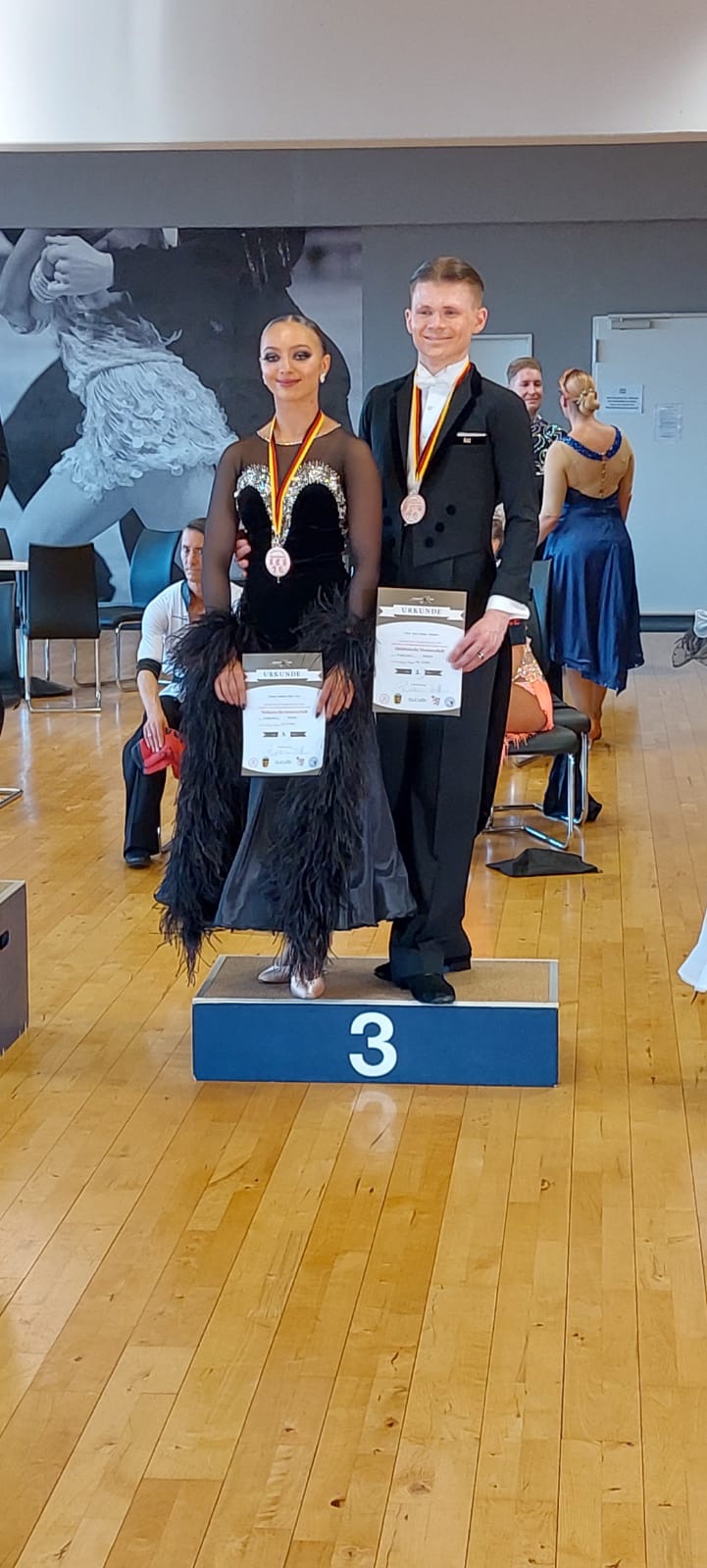 Zum Abschluss tanzten Jens Kothe und Vanessa Gergert in der Hauptgruppe Kombination. Auch diese beiden konnten sich über einige Bestnoten in der Wertung freuen und belegten in einigen Tänzen den zweiten Platz. Am Ende reichte es um eine Platzziffer nicht zur Silbermedaille, aber die beiden nahmen die Bronzemedaille mit nach Hause.