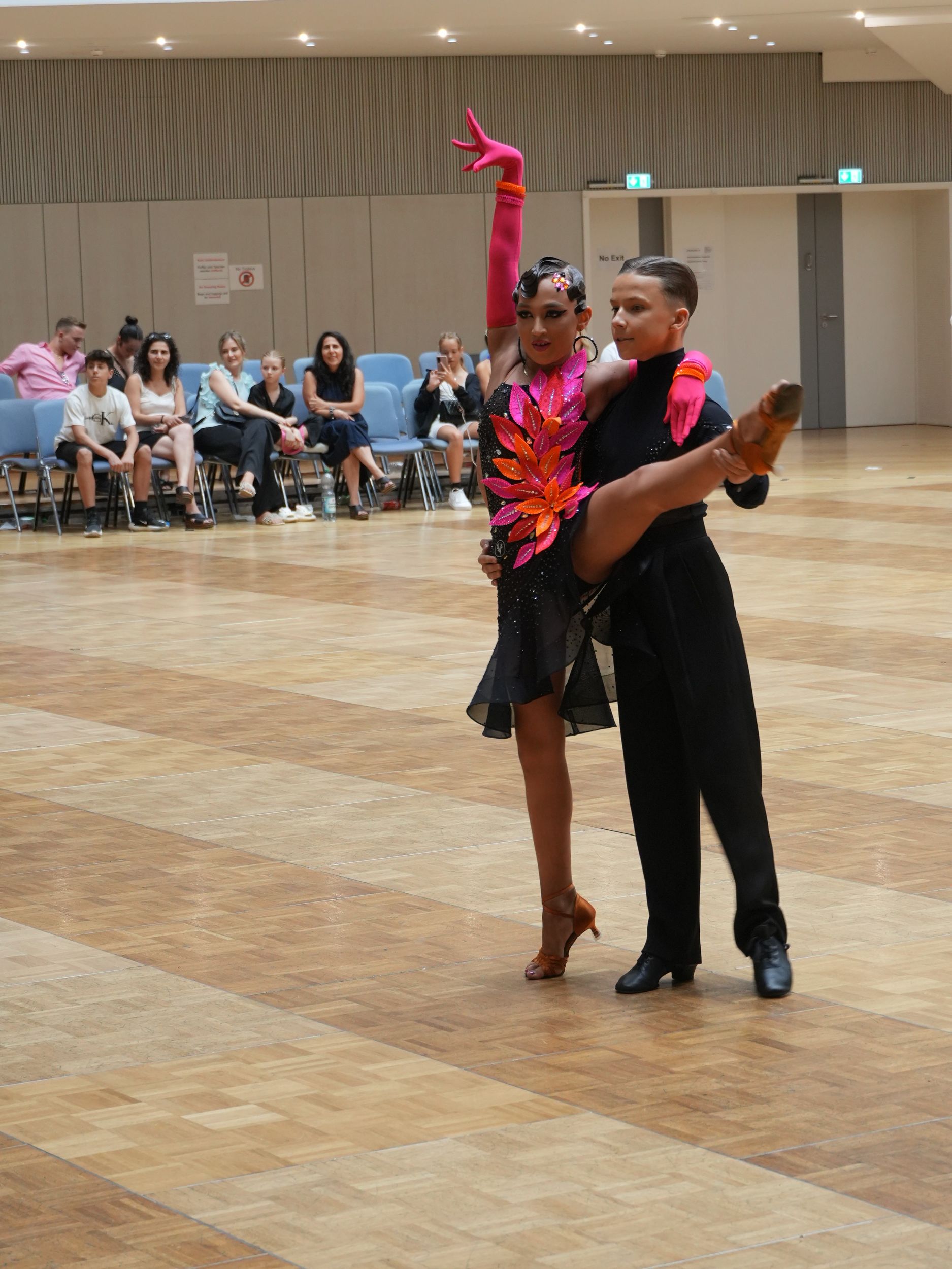 Auch im Hegelsaal gab es Grund zur Freude, denn Elias Schmidt tanzte mit Alisa Gerich ins Viertelfinale der Kinder Kombination und belegten den 19. Platz.