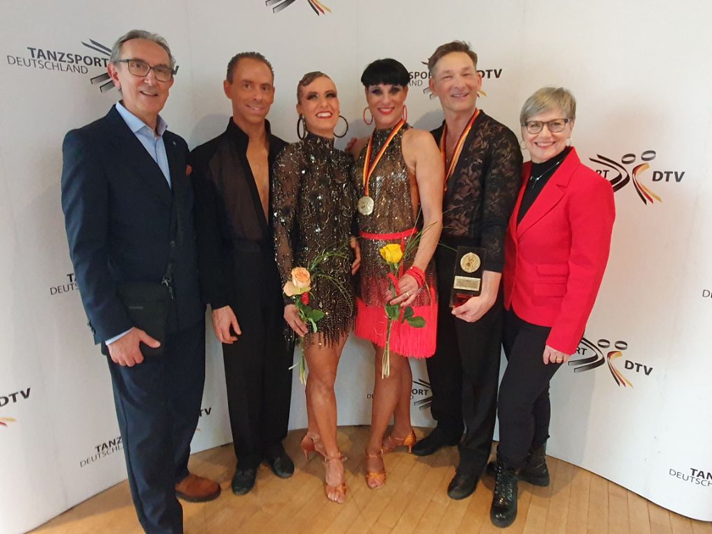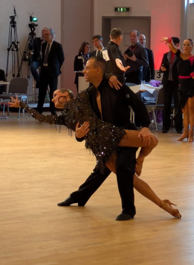 Mitte März wurde in der Stadthalle Wetzlar Latein getanzt, denn in Mittelhessen wurden in diesem Jahr die Deutschen Meisterschaften Latein für die U21, HGR sowie MAS I, II und III ausgetragen. Am Samstag gingen Oliver Brosch und Tina Grassl gut vorbereitet und hochmotiviert mit 36 weiteren Paaren an den Start und es sollten einige Runden getanzt werden. In den ersten beiden Runden überzeugten die beiden das internationale Wertungsgericht vollständig und gaben nicht ein Kreuz ab. Im Semifinale, welches sie wie im Vorjahr erreichten, wurde es dann spannend. Würde es in diesem Jahr noch eine Runde weiter gehen? Und die klare Antwort vom Flächenrand lautete: Ja! Souverän zogen Oliver und Tina in das Finale ein. Mit Wertungen von 2 bis 6 reichte es in der Endabrechnung für einen tollen 5. Platz und sie bewiesen damit einmal mehr, dass sie zu den Spitzenpaaren Deutschlands gehören!