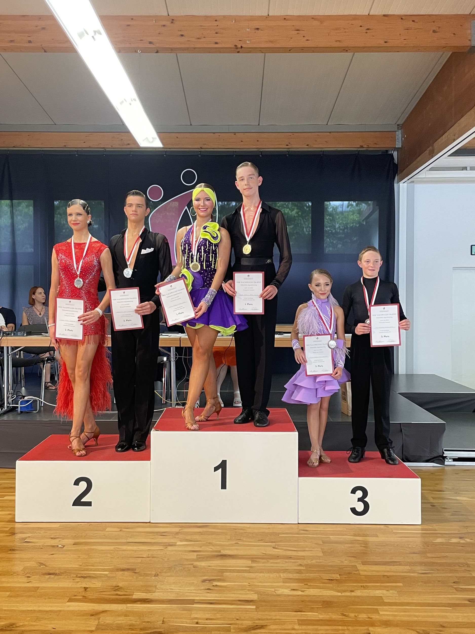 Die erste Goldmedaille sicherten sich Bernhard Siegle und Diana Trush in der Junioren I D Standard. Mit einer fast makellosen Bilanz tanzten die beiden in dieser Klasse auf den ersten Platz.
