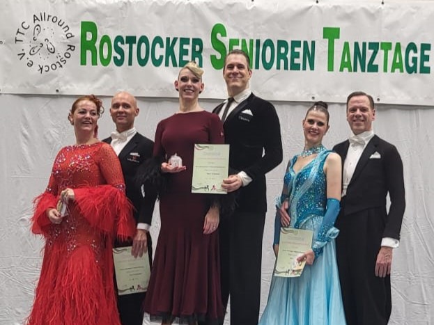 Einen Doppelerfolgt konnten Sven und Ramona Spengemann in Rostock feiern. Bei der 16. Auflage der Rostocker SeniorenTanzTage starteten die beiden am Samstag und am Sonntag und wurden vom Wertungsgericht souverän auf den 1. Platz gewertet. Lediglich drei Bestnoten fehlten zur vollständig makellosen Bilanz.