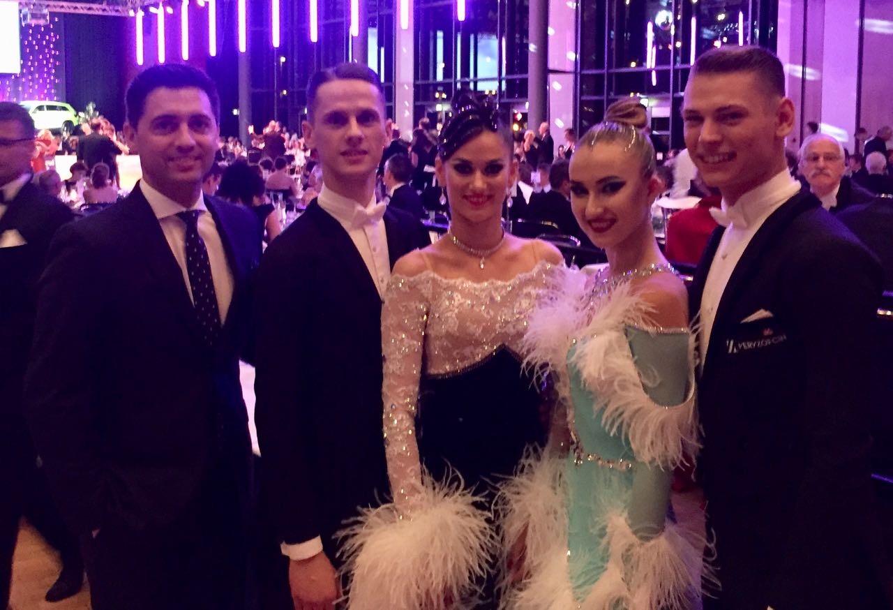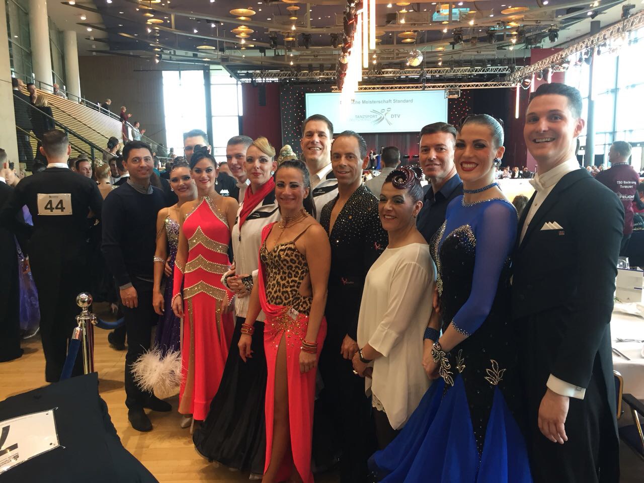 Zur Mittagszeit wurde dann mit einem festlichen Fahneneinmarsch die Deutsche Meisterschaft der Hauptgruppe S Standard begonnen, bei der 42 Paare aus dem gesamten Bundesgebiet an den Start gingen. Mit Emil-Daniel Leonte und Kristina Limonova sowie Dominik Stöckl und Madeline Weingärtner hatte das TSZ zwei starke Paare am Start, die sich problemlos den Einzug in die 24er-Runde am Abend sicherten. Mit der festlichen Ballveranstaltung der 17. Welttanzgala hatte die DM einen würdigen Rahmen im ausverkauften Congress-Centrum. Unsere Paare präsentierten tolles Tanzen und so war auch der Einzug in das 13-paarige Semifinale kein Problem. Mit der gezeigten Leistung wären beide Paare auch hervorragende Finalisten gewesen, aber leider fehlte am Ende ein kleines Quäntchen Glück und so belegten sie einen geteilten 8. Platz.