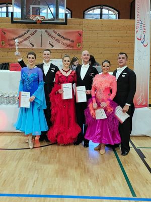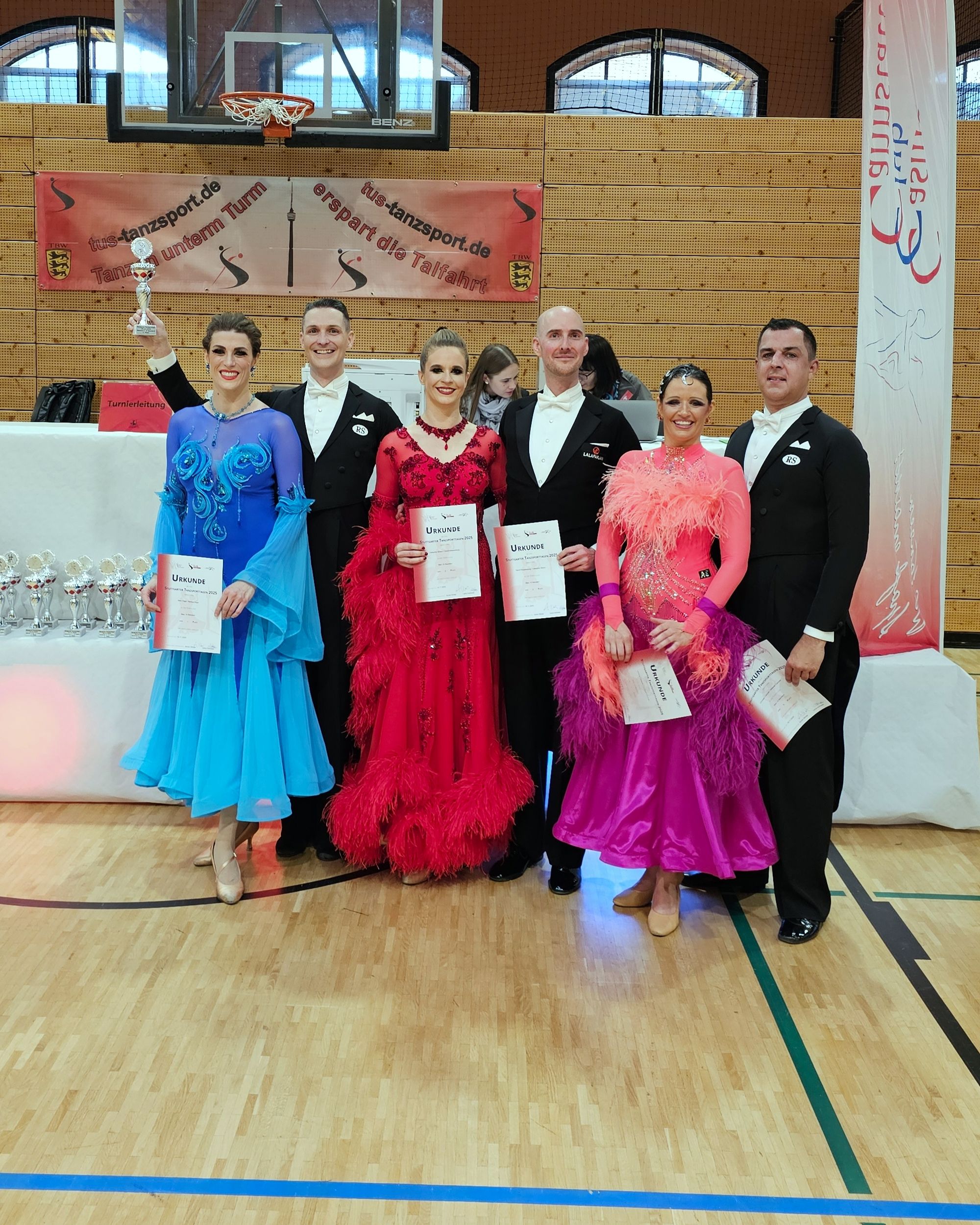 Die beiden konnten das Wertungsgericht mit ihrer gezeigten Leistung überzeugen und ertanzten sich in allen Tänzen den 1. Platz. Großartige Leistung!