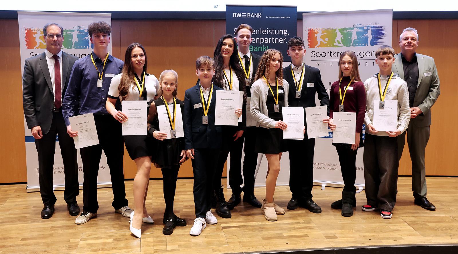 Bei den diesjährigen Sportlerehrungen am Freitag, 14.03. waren insgesamt rund 290 Nachwuchssportler im Rathaus und wurden für ihre herausragende Leistungen im Jahr 2024 vom Sportbürgermeister Clemens Maier sowie von Benjamin Barth (Vertreter des Sponsors BW-Bank) ausgezeichnet. In der Rubrik Tanzen waren ausschließlich Tänzerinnen und Tänzer aus dem TSZ nominiert und sie wurden begleitet von unserer Trainerin Julia Niemann.