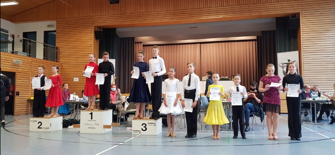 Unsere Nachwuchspaare zog es am Samstag, 27.11.2021 nach Offenburg um hier am diesjährigen Tanzsportwochenende des TC Schwarz-Weiß Offenburg teilzunehmen. Unsere Paare Mark Avtushko/Megan Pietsch, Oliver Gerber/Kamila Baisadykov, Tim Gordon/Julia Feitelson sowie Elias Schmidt/Venera Baisadykov und Frederik Schmidt/Alina Kromm hatten ein volles Programm, waren doch alle für mehrere Turnierstarts gemeldet.