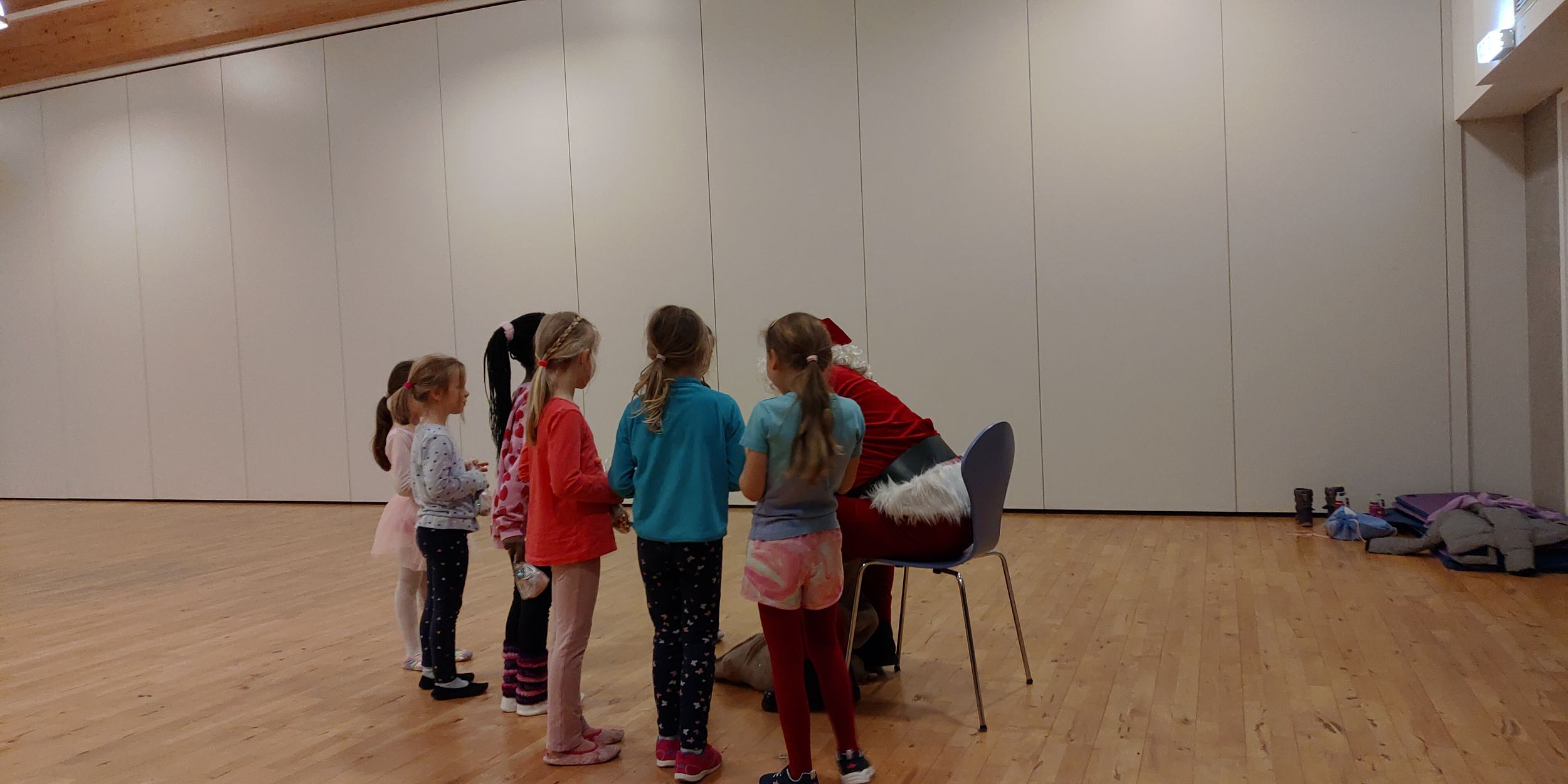 Zwei unserer Kindergruppen erhielten am Dienstag einen Überraschungsbesuch vom Weihnachtsmann und einem Weihnachtself. Die beiden ließen unsere Nachwuchstänzer vortanzen und anschließend bekamen alle Kinder eine kleine Belohnung vom Weihnachtsmann.