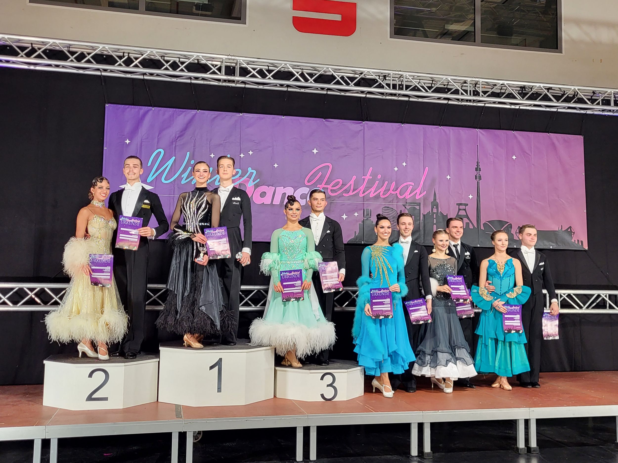 Am Wochenende 09./10.12. fand in Mühlheim wieder das traditionelle WinterDanceFestival statt und zahlreiche unserer Paare machten sich auf den Weg nach NRW, um daran teilzunehmen. Die Liste der Erfolge ist lang und reicht von Viertelfinalteilnahme bis hin zum Sieg: